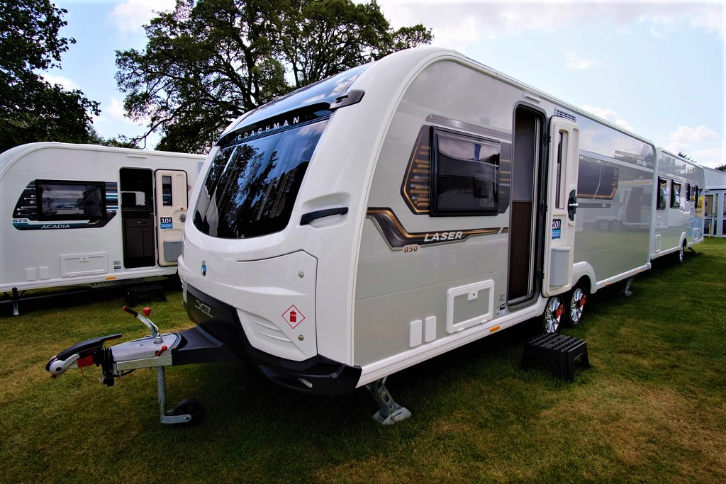 L for Laser. But, if weight and price are not an issue, you might want to start right here with the 855, one of four Laser Xcel caravans from Coachman for 2023. The build may be traditional - Coachman still sticks rigorously to hardened aluminium for its sides - but all else about this flagship tourer points towards modernity.