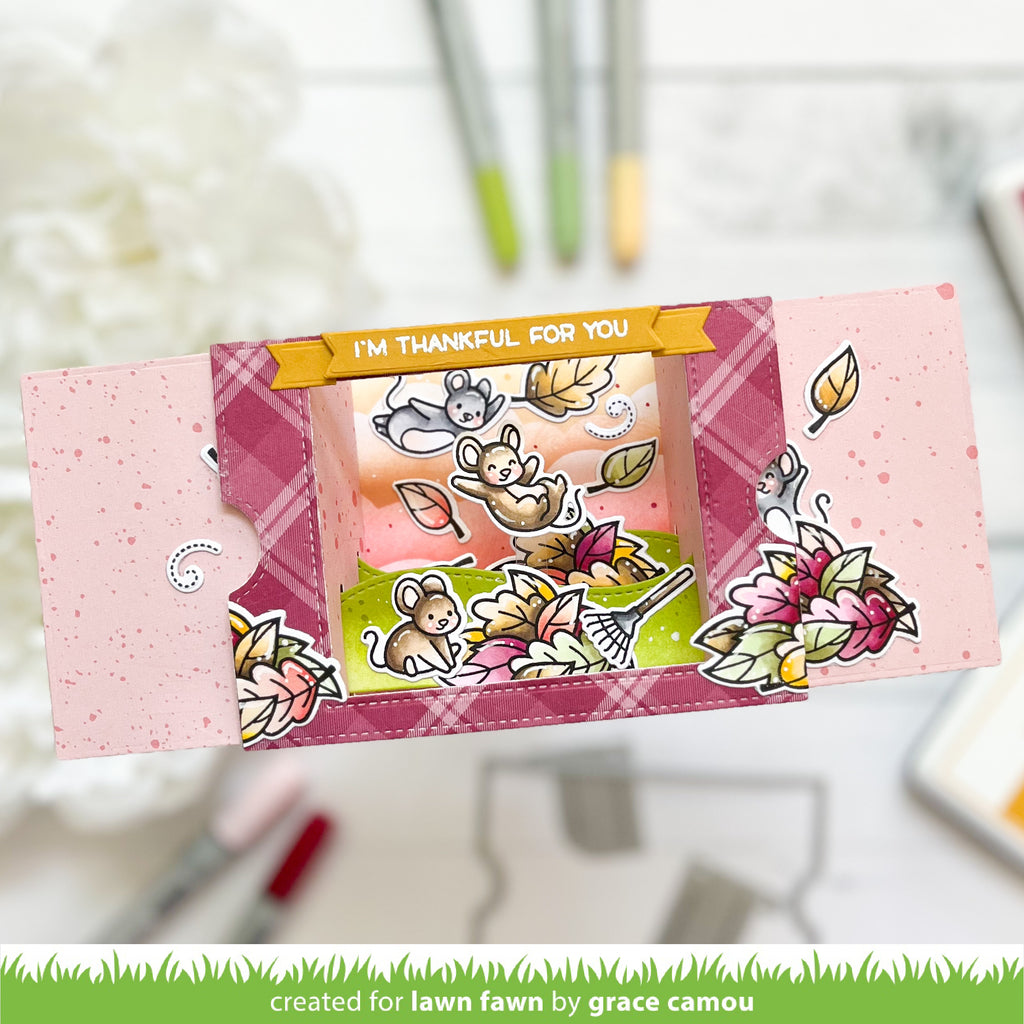 Hello Everybody 😃I am experimenting a bit more with the „Ta-Da! Diorama!" from @lawnfawn and made a fall themed interactive card with the mice from „You Aut.
